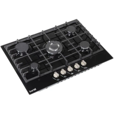 Baridi 70cm Gas on Glass Hob with 5 Burners, Cast Iron Pan Supports and Auto Ignition, 8kW, Black DH228