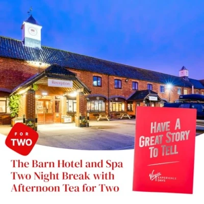Enjoy a two night stay in a double or twin room with breakfast each morning, amongst the rolling hills of tranquil Lincolnshire at The Barn Hotel & Spa On one afternoon, you’ll be served a delightful afternoon tea featuring sweet and savoury treats as well as an extensive selection of teas Available Sunday to Thursday throughout the year. Exclusions may apply. Minimum age: 18 Vouchers are valid for 12 months from the date of issue