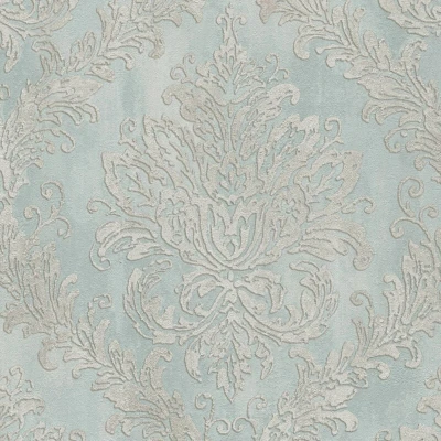 Baroque wallcovering wall Profhome 790493 hot embossed non woven wallpaper slightly textured with ornaments and metallic highlights blue pastel