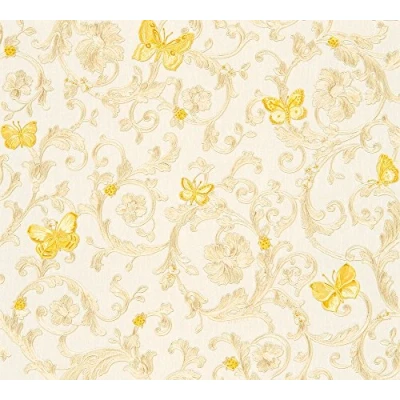 Baroque Wallpaper with Ornaments Versace 3 Non Woven 10.05 m x 0.70 Silver Yellow Creme Made in Germany 343251 34325 1