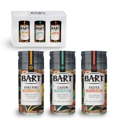 SPICE GIFT SET: Treat the home chef in your life with this 3-pack spice gift box - perfect for christmas, birthday or holidays SPICES: Featuring Cajun Spice Blend, Piri Piri Spice Blend & Fajita Spice Blend - perfect for any cooking enthusiast KITCHEN ESSENTIALS: Unleash your passion for cooking & share the good times - these spices for cooking make perfect gifts & new home essentials HOW TO USE: Grab your recipe book & get creative - create various dishes from hot Piri Piri chicken, to fajitas, enchiladas or tacos BART: Perfecting the art of vibrant, authentic flavours for over 60 years - use Bart pastes, herbs, spices & seasonings to take your culinary journey to the next level