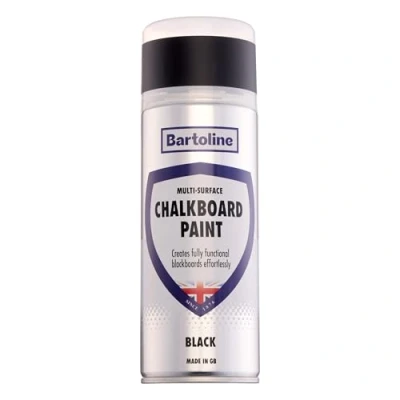Bartoline Chalkboard Paint Black 400ml Matt Finish Writable and Wipeable Spray for Walls, Furniture, Signs More Multi Surface Coating Home, Office, Classroom Retail