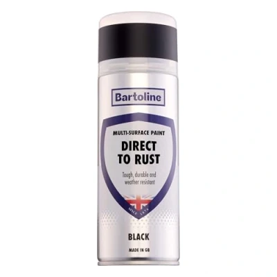 Bartoline Direct to Rust Multi Surface Paint Black 400ml Matte Finish All in One Spray For Metal, Wood, Plastic and Ceramic No Primer Needed Interior Exterior Use