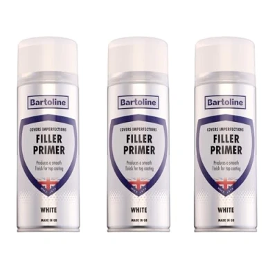 GREAT VALUE 3-PACK: Includes three 400ml cans of white filler primer – perfect for large or multiple DIY and automotive tasks. FILLS & SMOOTHS IMPERFECTIONS: Hides chips, dents, and scratches to create a clean, even surface for painting. MULTI-SURFACE PRIMER: Strong adhesion to wood, metal, and rigid plastic – ideal for furniture, cars, and home improvement. SUPERIOR COVERAGE & FINISH: High-build formula delivers more coverage than standard primers for a long-lasting result. QUICK-DRYING & SANDABLE: Dries fast for efficient topcoating; easy to sand for a flawless, professional-quality surface.