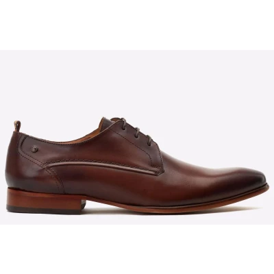 The Gambino Derby shoe features a 3-lace closure, clean plain toe design and exquisite stitching details. The cushioned Ortholite insole ensures comfort, while the slim formal resin sole adds a touch of sophistication to any outfit.- Quality Leather Uppers- Ortholite insole- Lace fastening- Slim Resin Sole
