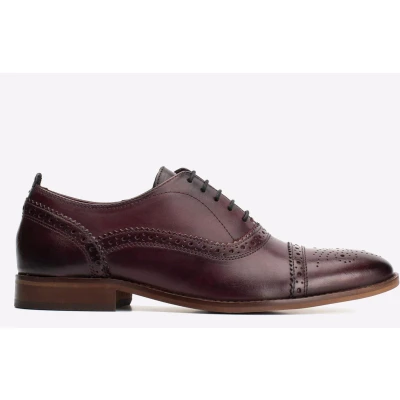 Base London Men's Cast Washed Smart Shoes, Dark Red, 8 UK