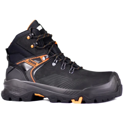 Introducing the highly durable and advanced Base T-REX MID/T-WALL Fortrex Ankle Shoes - Black/Orange. Crafted with precision using water-resistant Nabutek leather, these shoes offer unparalleled safety and comfort, making them ideal for demanding work environments.Key Features: 200 Joules Toe-Cap Protection: Fitted with SlimCap toe-cap, ensuring maximum protection against potential impacts and compressions. Puncture Resistant Sole: Fortrex patent offers top-tier protection against sharp objects, ensuring the safety of your feet at all times. Anti-Static Footwear: Designed for environments with potential electrostatic hazards, safeguarding both the wearer and electronic devices in proximity. Shock Absorption: Engineered heel region effectively diminishes the impact force, providing enhanced comfort during prolonged wear. Hydrocarbons Resistant: Ensures longevity and durability even in chemically challenging environments. Water-Resistant Upper: Premium Nabutek leather provides resistance against water penetration, keeping your feet dry. Heat Resilience: Exceptional resistance to heat up to 300°C for a minute and offers heat insulation up to 150°C, making it suitable for high-temperature work settings. SmellStop Lining: A unique lining technology that combats odour, ensuring freshness throughout the day.Whether you're navigating a challenging work environment or seeking reliable protection, the Base T-REX MID/T-WALL Fortrex Ankle Shoes stand as a testament to expert craftsmanship and innovative design.