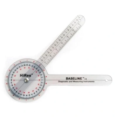 Angle-measuring device made from high-quality, transparent plastic Optimum legibility and resolution thanks to the white background behind the degrees, numbers and text Enables monitoring of the axis of movement and the trajectory of movement of the joint The 360° head has three scales, scale with 1° divisions Calibrated for use with the ISOM system (International Standards of Measurement)