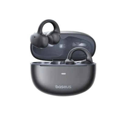 [Open Ear Clip-on Design] : Enjoy a safe and comfortable listening experience with the open ear clip-on design. Baseus MC1 open ear earbuds simply clip gently onto your ears and fit perfectly with glasses and other accessories. The innovative open ear earbuds allow you to stay aware of your surroundings, ideal for urban adventures like running, cycling, or walking. Hear both your music and the world around you! [Adaptive Comfort with Anti-Drop] : The MC1 clip on earbuds are designed for ultimate comfort. Baseus's self-developed Cloud Airbag design ensures cloud-soft comfort while securely fitting in your ears, increasing 198% stability and 200% comfortability. Four-Point Support design for an anti-drop stable experience, worry-free for various exercises and movements. Flexible C-Bridge design adapts to different ear shapes. 5.2g Lightweight design ensures long-lasting comfortable wear. [Impactful Sound with Anti-Leakage] : The MC1 clip on headphones feature innovative 3-magnet construction and 0.8mm larger amplitude, which improves full sound clarity and soundstage width. AI adaptive bass enhancement dynamically compensates for bass and increases bass details. Directional sound tech minimizes sound leakage and renders the private listening experience. [IP57 Waterproof & Dustproof] : Built to withstand the elements, the MC1 open ear headphones are rated IP57 for waterproof and dustproof. Whether you're caught in the rain or sweating it out at the gym, your earbuds stay safe and perform at their best [Adaptive Voice Capture] : Featuring Baseus DNN Adaptive Noise Reduction Algorithm and 2 noise cancelling mics, the MC1 running headphones cancels wind noise when biking or any other noise, and accurately picks up your voice, ensuring that you're heard clearly anytime, anywhere