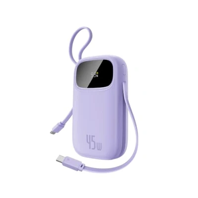 Baseus Powerbank 20000 mAh 45 W with Integrated usb C Cable, QPow3 Power Bank PD3.0 QC4.0 External Mobile Phone Batteries, 3 C, 1 A, Portable Charger for iPhone 16/15/14 Pro Max, iPad, Galaxy
