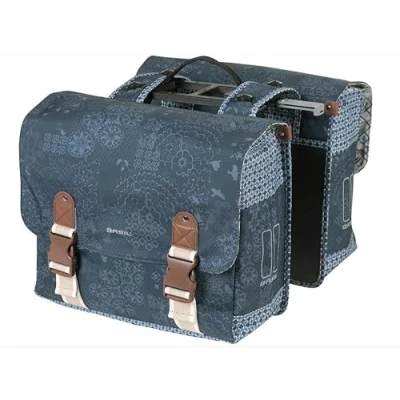 Basil Boheme MIK Double Bicycle Bag, 35 L, Blue, Water Repellent, Includes Lockable Adapter Plate, Perfect for Everyday and Leisure