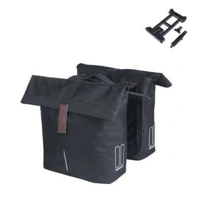 Basil City Double Bag MIK 28 32L, Black, Water Repellent, Includes Lockable Adapter Plate, Perfect for Commuting and Leisure
