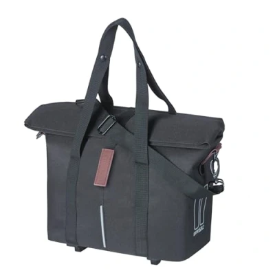 Water-repellent polyester: robust material reliably protects the contents from light rain and moisture. 8-11L volume: flexible expandable volume, ideal for shopping, commuting or trips. 3-in-1 mounting system: includes lockable MIK system, pre-assembled KF adapter plate and hook for easy hooking on the pannier rack. Multi-purpose: can be used as a handbag, shoulder bag or on handlebars and pannier rack. Reflective details: ensures better visibility and safety in road traffic in the dark.