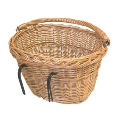 Front wicker bike basket Oval shaped Hooks to attach to bike front or rear Handle