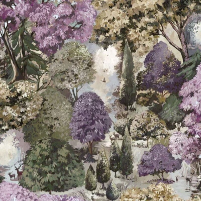 Basildon Forest Woodland Animal and Themed Hand Painted Look Victorian Style Tapestry Wallpaper for Bedrooms, Living Rooms Mulberry Purple/Green Holden 13930