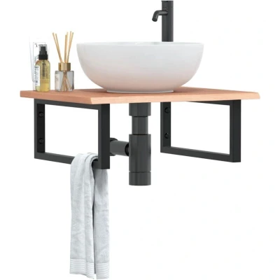 ManoManoGeneral description The wall mounted basin shelf securely attaches to the wall, providing an elegant and space-saving solution for your bathroom. This basin shelf features a sturdy steel structure combined with a solid oak wood top, ensuring stability and longevity. Its floating design offers ample space for storing creams and small items, while the rectangular shape allows for hanging towels or other items, maximizing your space. Technical specifications Countertop: Colour: Light brown Material: Solid oak wood with a varnish finish Dimensions: 60 x 50 x 2 cm (L x W x T) Shelf bracket: Colour: Black Material: Steel Shelf bracket size: 20 x 45 cm (W x L) Tube size: 3 x 3 cm (W x L) Shape: Rectangular Loading capacity: 100 kg Wall mounting holes distance: 60 mm Tabletop hole distance to the edge: 60 mm on each side With 2 holes for wall mounting and 2 holes for tabletop mounting Assembly required: Yes Compatibility and accessories Screws are not included; you can purchase the screws