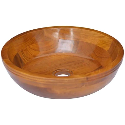 General description This solid teak wood basin serves as a practical sink for everyday use while also enhancing your living space. Made from extremely durable teak hardwood, it has been seasoned, kiln-dried, and fine sanded for a smooth finish. Additionally, this wooden basin is very easy to clean. Technical specifications Material: Fine sanded teak hardwood with finish Dimensions: 40 x 10 cm (Diameter x Height) Drain hole diameter: 5 cm Assembly required: No Other information