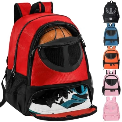 Basketball Bag Backpack for Men Women with Ball & Shoes Compartment 30L Capacity Lightweight Breathable Boys Girls Soccer Fit Volleyball Football Sports Travel School Gym Red