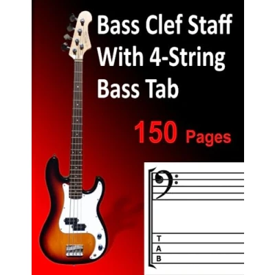 Bass Clef Staff With 4 string Tab: Blank Guitar Tablature Book