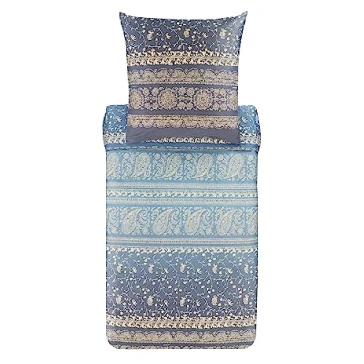 The fascinating high-quality satin bed linen from the Italian premium brand Bassetti is made from 100% pure cotton satin (110 threads per cm²) and impresses with its tasteful pattern The elegant bed linen set includes a duvet cover 200 x 200 cm and two pillowcases in the size 80 x 80 cm The elegant bed linen impresses with its silky fabric Please note that pattern deviations may occur with the additional cushion covers, as they are individually sewn from the bedding fabrics It is washable at 60 °C and can be tumble dried. It is characterised by its special ease of care. Ironing is permitted at medium temperature (max. 150 °C)