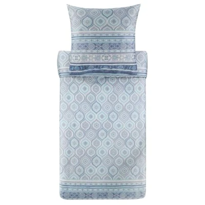 Bassetti Hanbury 9329922 Bed Linen + 1 Pillowcase 100% Cotton Sateen in Azure Blue C1, Dimensions: 155 x 220 cm K 80