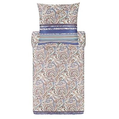 The fascinating high-quality satin bed linen from the Italian premium brand Bassetti is made from 100% pure cotton satin (110 threads per cm²) and impresses with its tasteful pattern The elegant bedding set includes a duvet cover 155 x 220 cm and a pillowcase in the size 80 x 80 cm The elegant bed linen impresses with its silky feel fabric Please note that the additional cushion covers may vary as they are individually sewn from the bed linen It is washable at 60 °C and can be tumble dried. It is characterised by its special easy care. Iron at medium temperature (max. 150 °C)