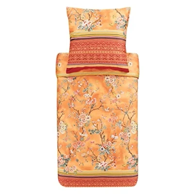 Bassetti Pallanza O1 9323954 Bed Linen Set Cotton Maco Satin in Orange 2 Piece with Zip Closure 200 x cm / 80