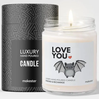 Bat Gifts Luxury Soy Wax Vanilla, Jasmine, Sugared Almond Makester