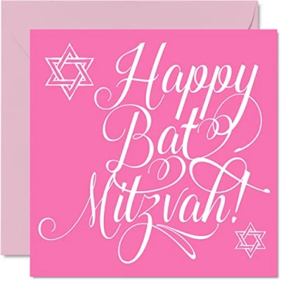 Bat Mitzvah Card for Girls Her Happy Mazel Tov, Good Luck Congratulations Gifts, Gifts Girls, 145mm x Jewish Greeting Cards Bar