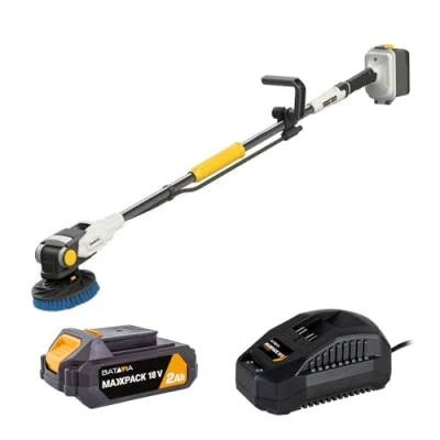 Powerful cordless scrubber with patented 2-in-1 counter rotating brushes Brushless motor for best-in-class cleaning results and outstanding performance for cleaning terraces, pavements, houses, campers, pools, boats, and more! IPX-7 & 100% waterproof design with garden hose connection Flexible brush head between -15° and +90°