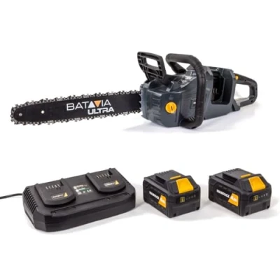 General description This Batavia MAXXPACK Brushless 18in Chainsaw is an ideal tool for sawing and pruning small to medium trees. It combines the power of a petrol chainsaw with the convenience of an 18V Maxxpack battery, allowing for efficient operation without harmful emissions. The chainsaw is perfect for gardeners, tradesmen, handy men, and serious DIY enthusiasts. Technical specifications Power: 36V Bar Length: 18in Weight: 3.8kg Chain Speed: 20m/sec Batteries: 2 x 18V 4.0Ah Li-ion (included) Charger: 1 x 3.5A Dual Charger (included) Other information Brushless motor for increased power, longer runtime, and extended lifespan Automatic oil lubrication for reduced maintenance Tool-free chain tensioning and replacement Equipped with a chain brake for additional safety Part of the MAXXPACK collection, compatible with 2 x 4.0Ah or 2 x 5.0Ah batteries (not supplied)