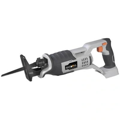 General description The Batavia MAXXPACK Reciprocating Saw is a versatile power tool designed for cutting wood and metal. It features an ergonomic design with soft grip handles for enhanced comfort and control during operation. The saw is compatible with all standard reciprocating saw blades and offers easy blade changes with a tool-free quick-change system. Technical specifications Strokes at No Load: 0-3,000/min Tool stroke length: 22 mm Cutting capacity in wood: 100 mm Cutting capacity in metal: 6 mm Sound pressure level: 87.33 dB(A) Compatibility and accessories Compatible with all standard reciprocating saw blades Includes a quick-change blade assembly system Installation Blade changes are quick and tool-free, using the quick-change system Usage Designed for cutting wood and metal materials Features a variable speed trigger for precise control Includes a 'lock-on' button for extended use Other information Comes as a Bare Unit, No Battery or Charger supplied