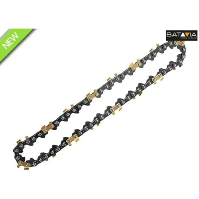 General description The Batavia Nexxsaw Titanium Coated Chainsaw Chain 7in is a replacement chain designed specifically for the Batavia NEXXSAW. This chain features titanium-plated teeth that enhance cutting performance, allowing you to cut up to 20% faster compared to standard chains. Technical specifications Length: 7 inches Material: Titanium coated