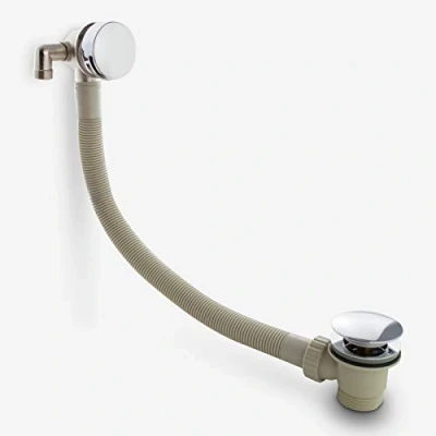 AmazonPush button bath tub waste with connecting overflow Combined bath filler and waste The overflow doubles as a bath filler tap and is connected to the waste by strong and sturdy plastic piping Modern design chrome plated finish Durable and solid brass construction, Manufacturer: Nes Home