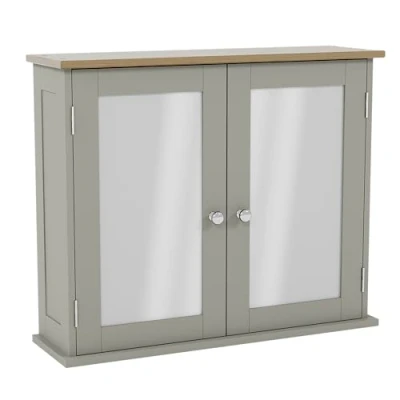 Bath Vida Priano Double Door Mirrored Bathroom Cabinet Storage Cupboard Wall Mounted, Grey & Oak