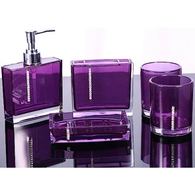 Bathroom accessory Set Purple soap dish Acrylic Bathroom,5PC/Set Accessories In Bath Cup Bottle Toothbrush Holder