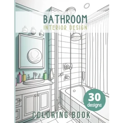 Bathroom Coloring book: Interior design Adult Book Features Cozy, Beautiful & Peaceful bathrooms Illustrations for Relaxation and Stress Relieving. (Designs to Color)