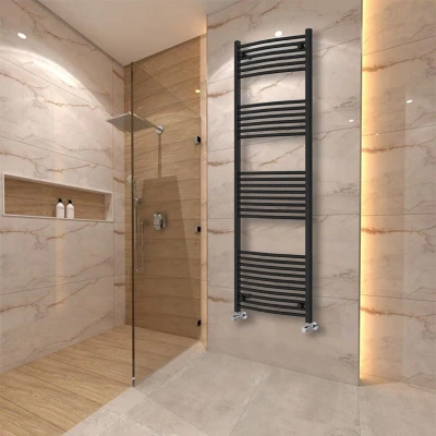 Bathroom Heated Towel Warmer Curved Black 1800x600mm Warmehaus