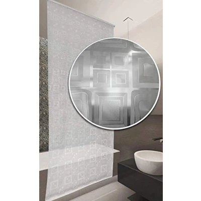 Size: Wide 80cm x Long 240cm (31.5" x 94") - Please note that the width selected is the width of the blind itself and it does not include the fittings- once the fittings are in place this will add 5CM to the overall width. Please allow for this when you select your size. Colour: As seen - semi-translucent with squares design - More Designs available in our Amazon store Material: (Blind) Recyclable, and chloride-free material - PEVA, 100% Waterproof. Fixings are made of PVC Includes: Flexible weighting at the lower end of the blind, Right or left side pull mountable. Simply screws into your ceiling using two brackets supplied for a tidy modern look for your bathroom Produced in EU - Brand New Shower Roller Blind - Ideal Alternative for Shower Screens - Space Saver