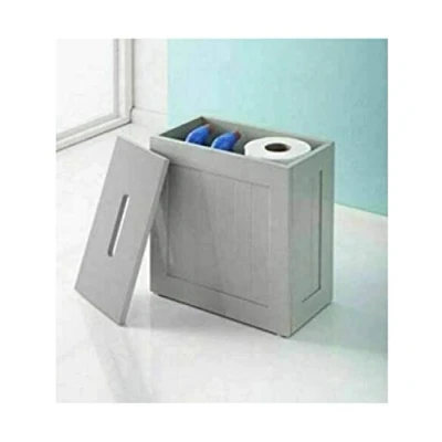Bathroom Storage Tidy Box Wooden Small Toilet Cleaning Product Furniture Unit Grey Crisp Finish Cupboard Decor Slim Floor Standing Design Cabinets With Lid