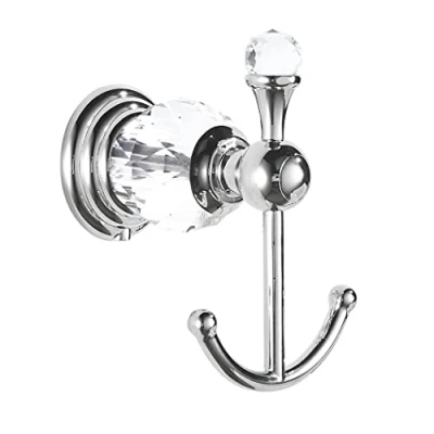 BATHSIR Polished Chrome Alloy Towel Hook,Modern Silver Crystal Coat Robe Hook Wall Mounted