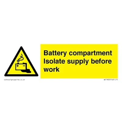 Battery compartment Isolate supply before work Sign 150x50mm L15