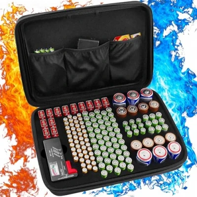 Large Battery Organiser: The battery storage box offers large capacity to store all types of batteries. It can store 146 batteries of various sizes in AAA, AA, 9V, C, and D sizes and comes with a removable battery tester (Batteries not included). The battery box keeps all your batteries safe and organised. It is made of high quality materials. Protective Construction: This battery holder case is made of high quality materials and it is fireproof and waterproof materials. The battery case storage ensures the safety and security of your batteries. This 9v battery holder can withstand high temperatures, avoid water drop damage, and keep batteries secure. Removable Display Screen Battery Tester: The battery box storage features a removable battery tester with an easy-to-read display screen. This aa battery holder allows you to efficiently check the remaining capacity of various batteries and simplify maintenance on rechargeable ones with the included tester. Transparent design battery organizers cover can see the internal batteries pack status without opening, easy to find what you need.