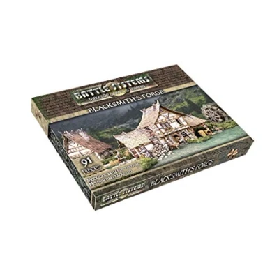 ⚔️ BATTLE SYSTEMS SCENERY IS THE PERFECT BACKDROP FOR A BATTLE: The Fantasy Blacksmith's Forge box provides the scene for a safe haven where warriors and adventurers go back and rest after a day of adventuring. It is part of a range of landscapes for war and table top games. ⚔️ USE THIS SUPERB TABLETOP TERRAIN TO CREATE AN UNFORGETABLE SESSION: These models require no painting as each side of the card is already printed in full color. The scenery is made of high quality, high density card. It is the perfect backdrop for skirmishes and monster raids. ⚔️ CREATE 3D MULTI-LEVEL BUILDINGS YOU DO NOT HAVE TO PAINT: The crate contents require assembly and some smaller parts will require glue. Roofs are removable and interiors are fully detailed providing realistic indoor exploration and fighting. This Blacksmith's Forge Terrain landscape is suitable for 28mm – 35mm scale games. ⚔️ THIS FLEXIBLE DURABLE PRODUCT IS PERFECT FOR ANY FANTASY OR HISTORICAL GAMES: It can also be used for Historical wargaming set in the Medieval Times or the Dark Ages. ⚔️ THIS IS A HIGHLY CUSTOMIZABLE VILLAGE, NO TWO BUILDS NEED BE THE SAME : Flat-packed, the pieces are modular and can be assembled in any way providing a different structure for every game session. Buildings and accessories are also available separately., Manufacturer: Battle Systems