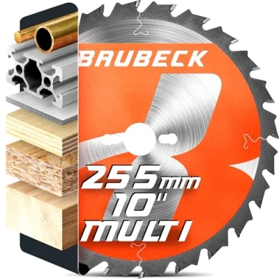 BAUBECK 255mm x 25.4mm/1inch saw blade fast cut in Wood, Metal with 20/16mm bore rings TCT 255 mm x24T Compatible Bosch Makita Dewalt Festool Freud circular
