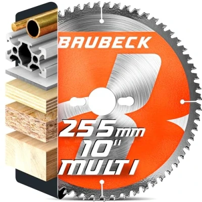 BAUBECK 255mm x 25.4mm/1inch saw blade x100T for fine finish in Wood, Metal with 20/16mm bore rings TCT 255 mm Compatible Bosch Dewalt Festool Freud circular