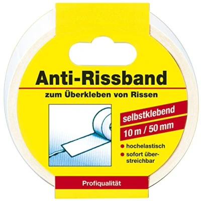 Self-adhesive anti-tear tape For sealing cracks Immediately pasted over with wallpaper, prevents the wallpaper from tearing again Can be painted over immediately with commercially available emulsion paints Also bridges large cracks and crevices Excellent ageing resistance Roll width: 50 mm, Manufacturer: Baufan