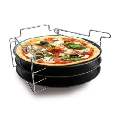 Baumalu, Set of 3 Pizza Plates with Adjustable Stand, Diameter 30 cm, Non Stick, Colour: Silver and Black, Height 15 Ideal for Multiple Cooking