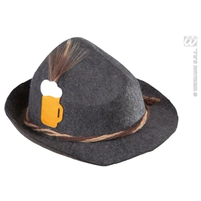 Bavarian hat For adults Colour: grey With brown ribbon and feathers Ideal for Oktoberfest or other parties, Manufacturer: Widmann