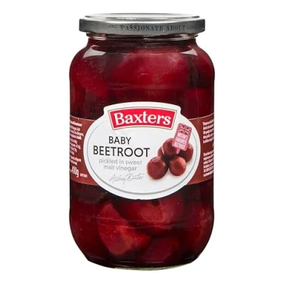 JoybuyBaxters Baby Beetroot 567g: Deliciously hand-selected baby beetroots, gently steamed and pickled in sweet malt vinegar using Baxters’ special recipe. Contains barley and sweetener; 80g provides one of your five a day. Store in a cool place and refrigerate once opened.